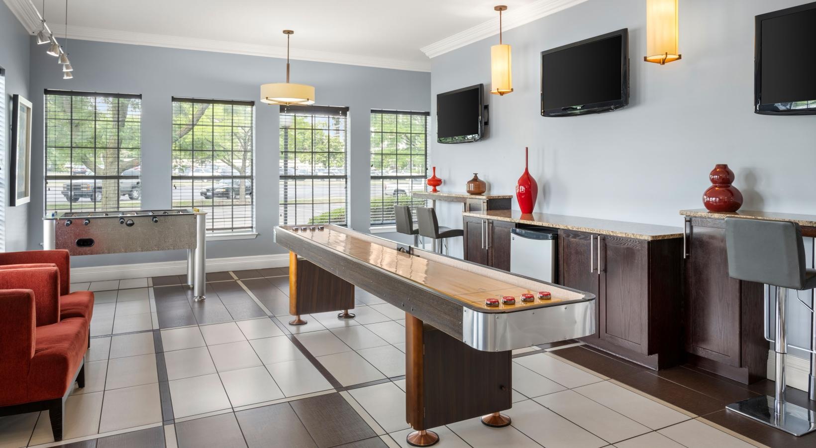 Life at Martin's Point is just as inviting as your apartment. Take a dip in our sparkling resort-style pool, break a sweat in the fully equipped fitness center, or enjoy some fun in the retro-chic game room. With so many ways to relax, recharge, and connect, Martin's Point is more than a home—it’s your elegant escape in Lombard.